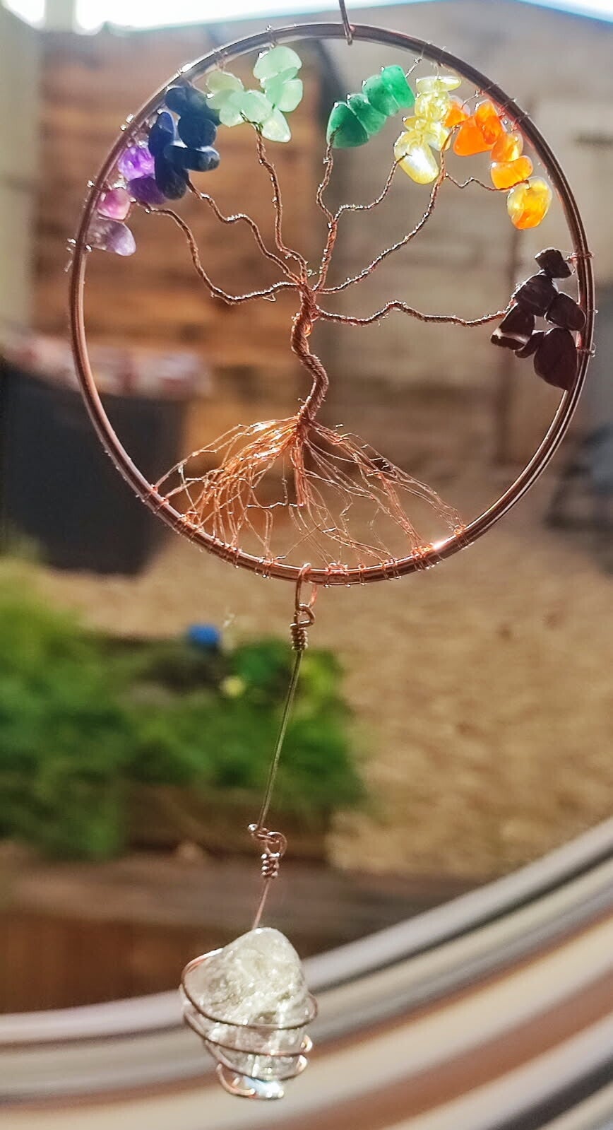 Arbre de vie en cuivre 7 chakras, suspension en cristal de roche